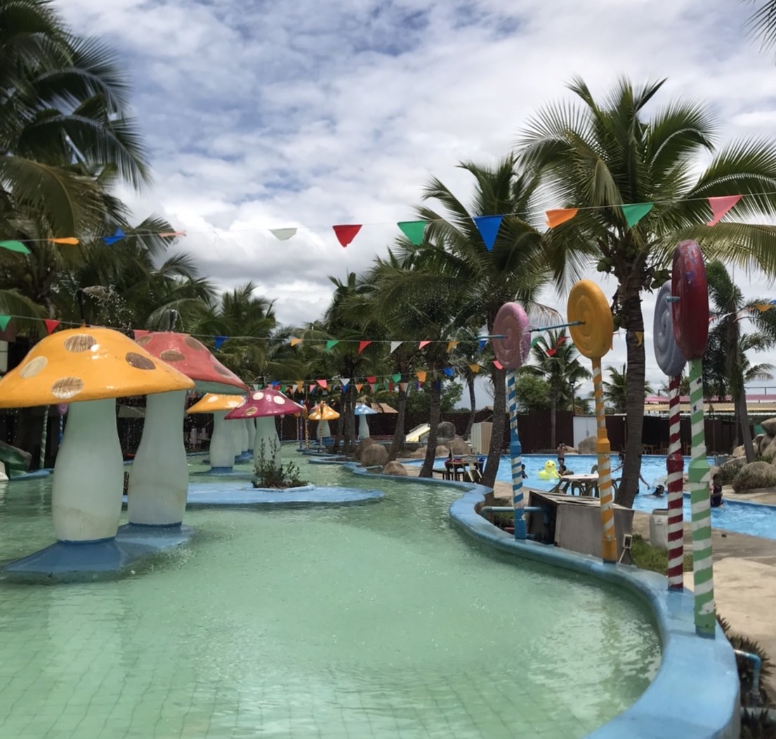The Sun Water Park is a low-key more relaxed water park with a lazy river that wraps around both sections of the park. Their are two distinct sections; shallower waters for the little ones with the smaller slides and a deeper area with speed style slides for the braver bigger kids (including parents!) There is a small basic cafe on site and an area to rent floaters & life jackets.