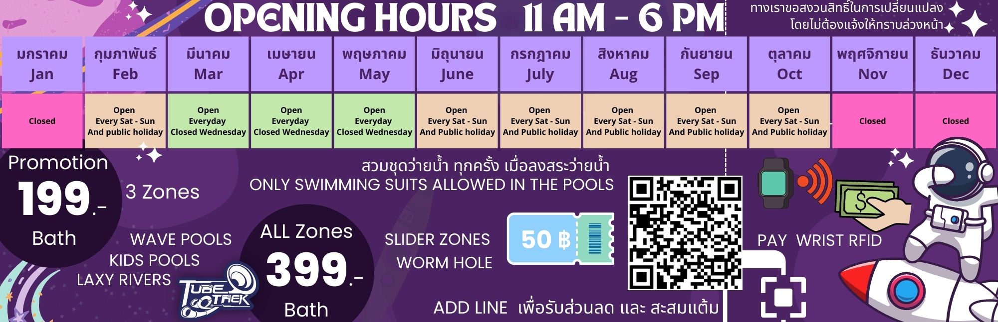 Tube Trek Water Park is Chiang Mai’s first water park featuring many different zones for all kids from toddlers to teens. They have an impressive selection of slides, a lazy river where you can float along in donut style floaters and the highlight of this park is definitely the huge wave pool.